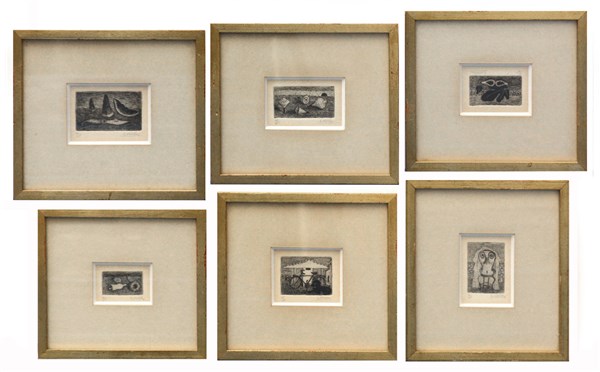 raccolta di sei piccole acqueforti, numerate 95/325 e firmate in basso a matita. Si allega la presentazione della cartella di Libero De Libero