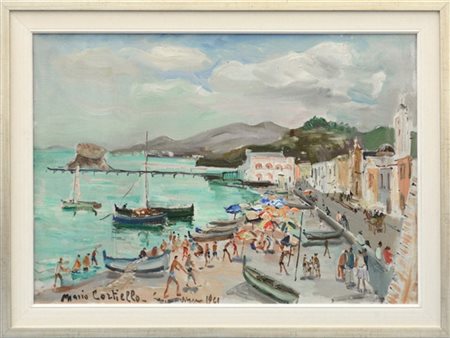 Mario Cortiello "Paesaggio di Lacco Ameno, Ischia" 1961 olio su tela cm 48,5x69,