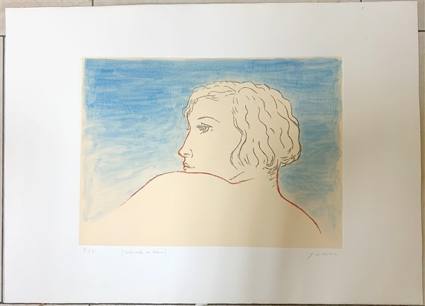 Giorgio de Chirico "Profilo di donna" 1971 incisione colorata a mano (lastra cm