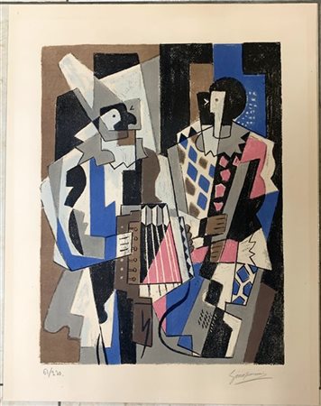Gino Severini "Les Arlequins" 1954 litografia a colori cm 47x37 numerata 61/220