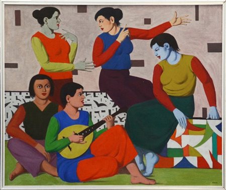 Pompeo Borra "I musicanti" 1952 circa olio su tela cm 100x120 firmato in basso a