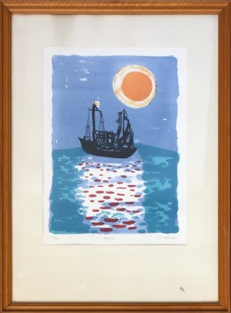 Francesco Tabusso "Agosto" litografia a colori cm 64x46 Firmata, titolata e num