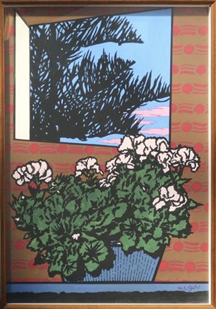 Ercole Pignatelli "Alla finestra" 1967 olio su tela cm 100x70 firmato in basso a