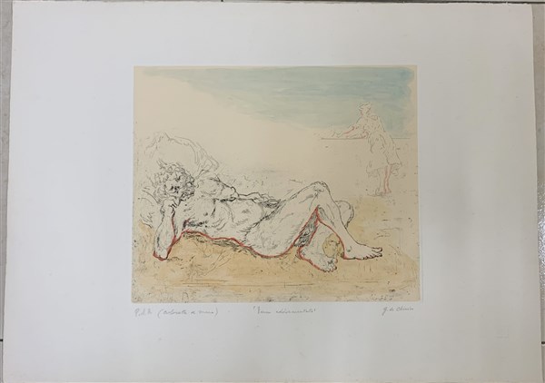 Giorgio de Chirico "Fauno addormentato" 1971 incisione colorata a mano (lastra c
