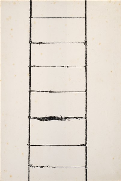 Emilio Scanavino "La scala" 1968 matita grassa su carta cm 52x34,5. In cornice (