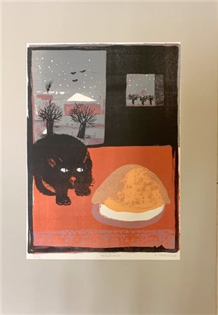 Francesco Tabusso "Febbraio" 1968 litografia a colori cm 68x46 numerata 6/x, tit