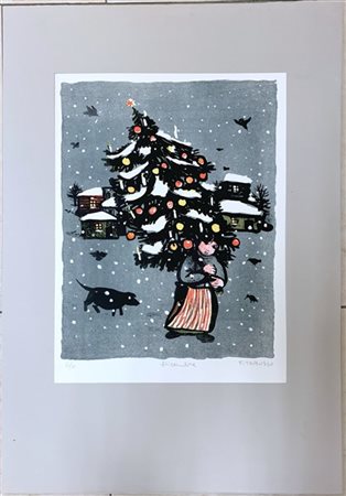 Francesco Tabusso "Dicembre" 1968 litografia a colori cm 68x46 numerata 6/x, tit