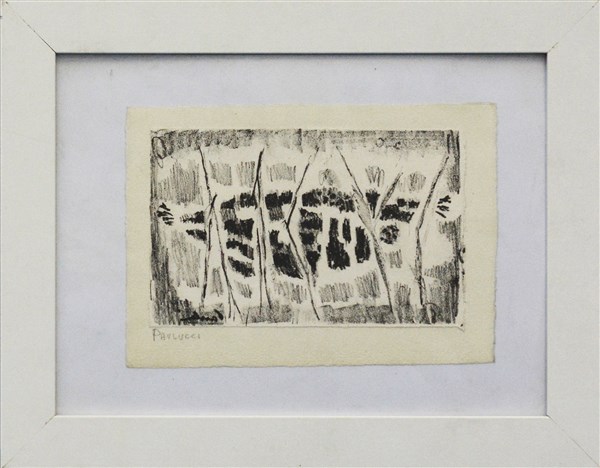 Enrico Paulucci "Senza titolo" litografia in bianco e nero cm 12x17,5 firmata i