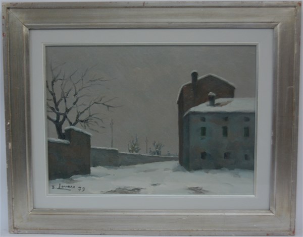 Dino Lanaro "Inverno a Thiene" 1979 olio su cartone cm 36x50 firmato e datato in