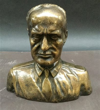 Piccolo busto in bronzo raffigurante Mussolini in uniforme. Prima metà secolo XX.(cm 21) (lievi difetti)