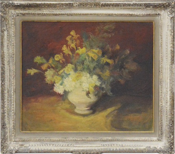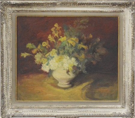 "Fiori" olio su compensato (cm 51x61) Firmato e titolato al retro. In cornice