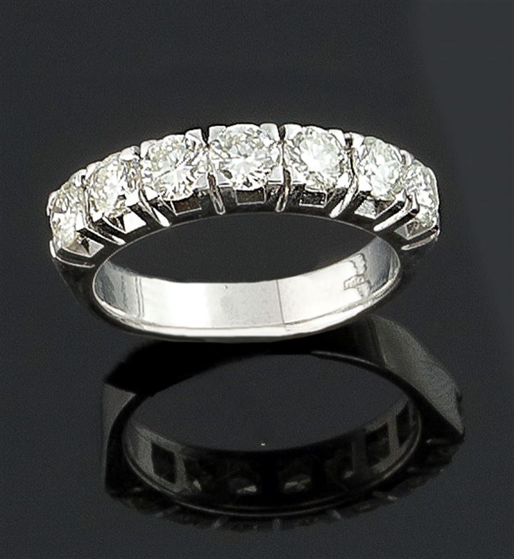 Fedina in oro bianco sommità recante sette diamanti taglio brillante per complessivi ct 1,30 ca