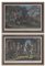 Coppia di antiche incisioni colorate raffiguranti scene di caccia del secolo XV