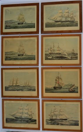 Lotto composto da otto riproduzioni inglesi raffiguranti vascelli (cm 40x30) (d