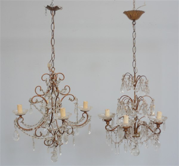 Lotto di due piccoli lampadari diversi in vetro e metallo (difetti)