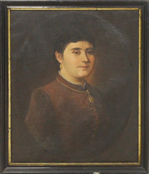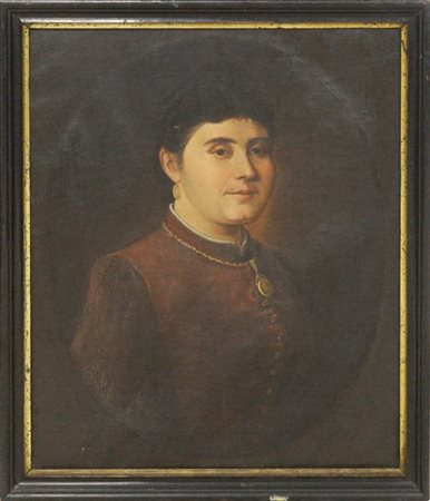 Ignoto del XIX Secolo "Ritratto di gentildonna" olio su tela (cm 60x50) In cornice