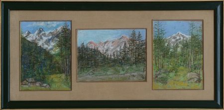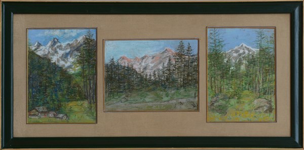 "Visioni di Macugnaga" tre pastelli raccolti in un'unica cornice (misure diverse) due dei tre firmati. Al retro: cartiglio