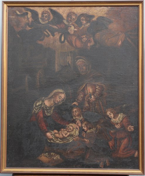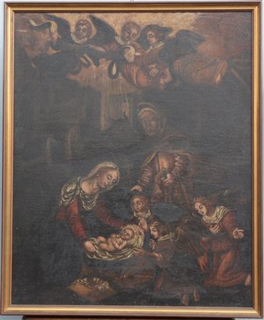 Ignoto "Natività" antico dipinto ad olio su tela (cm 90x73)