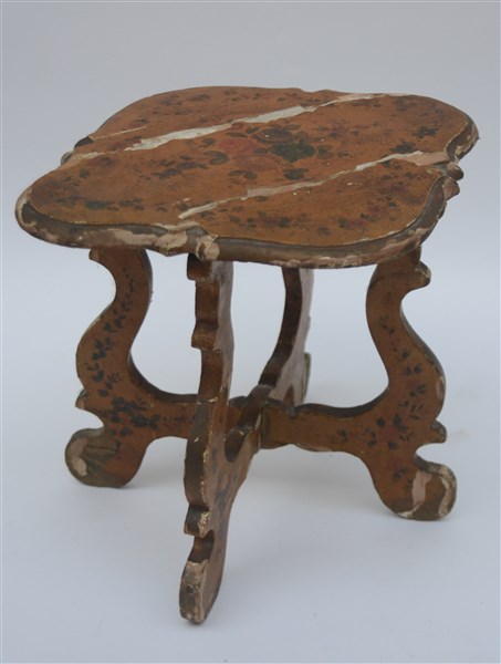 Sgabellino sagomato in legno laccato e dipinto a fiori (difetti)