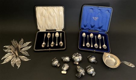 Cartone contenente alcuni segnaposto e altri oggetti diversi in argento (g 400