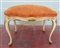 Panchetto con gambe mosse in legno laccato e dorato, seduta rivesta in velluto color salmone (cm 62x48x42) (difetti)