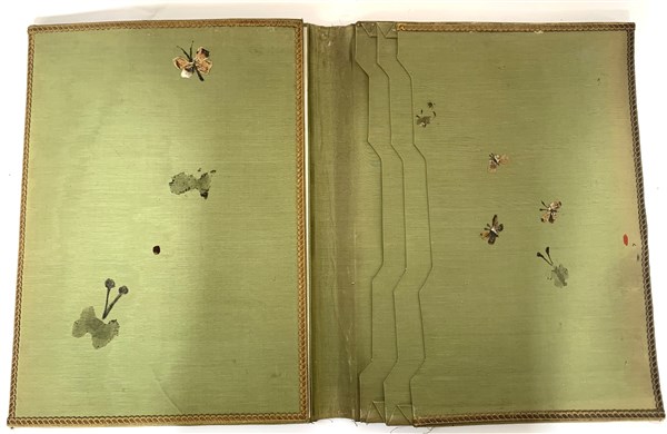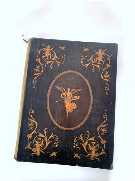 Arte sorrentina sec. XIX. Porta documenti da scrivania in palissandro intarsiato in bosso a putti e figra di dea (lievi difetti)
