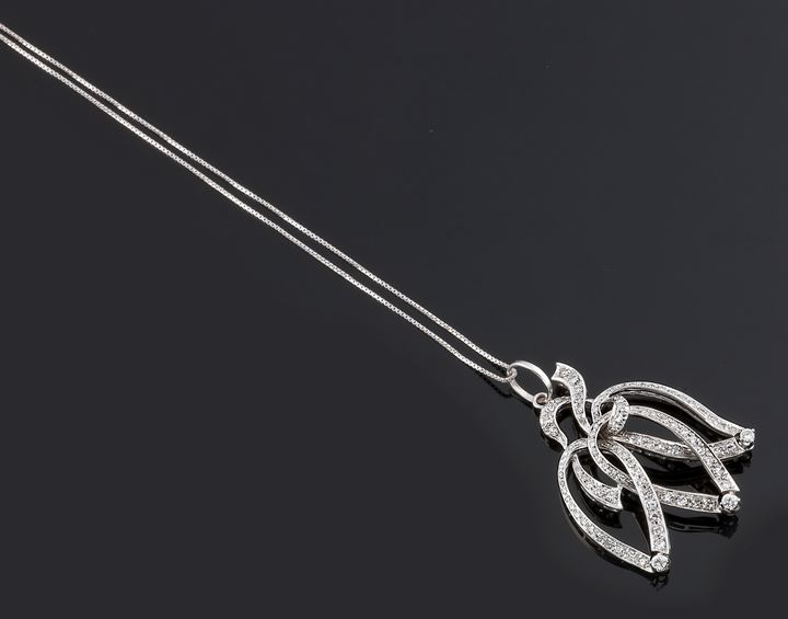 Catena con ciondolo in oro bianco a forma di campanula interamente in diamanti taglio