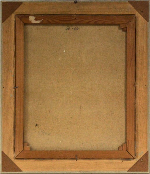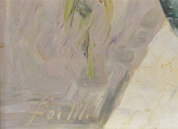 Firma indecifrata "Vaso con fiori" olio su tela (cm 60x50) firmato in basso a sinistra, in cornice (difetti)