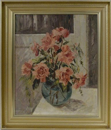 Firma indecifrata "Vaso con fiori" olio su tela (cm 60x50) firmato in basso a s