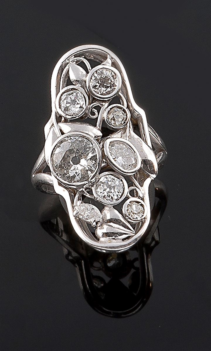 Lotto 803 | ANELLO Anello in oro bianco, sommità di forma ovale, con diamanti taglio...