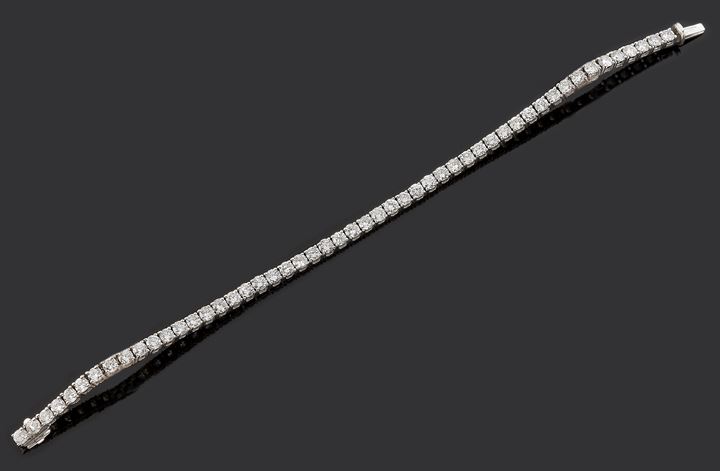 Bracciale in oro bianco, modello tennis, con diamanti taglio brillante colore I, purezza VS per complessivi ct 7,20