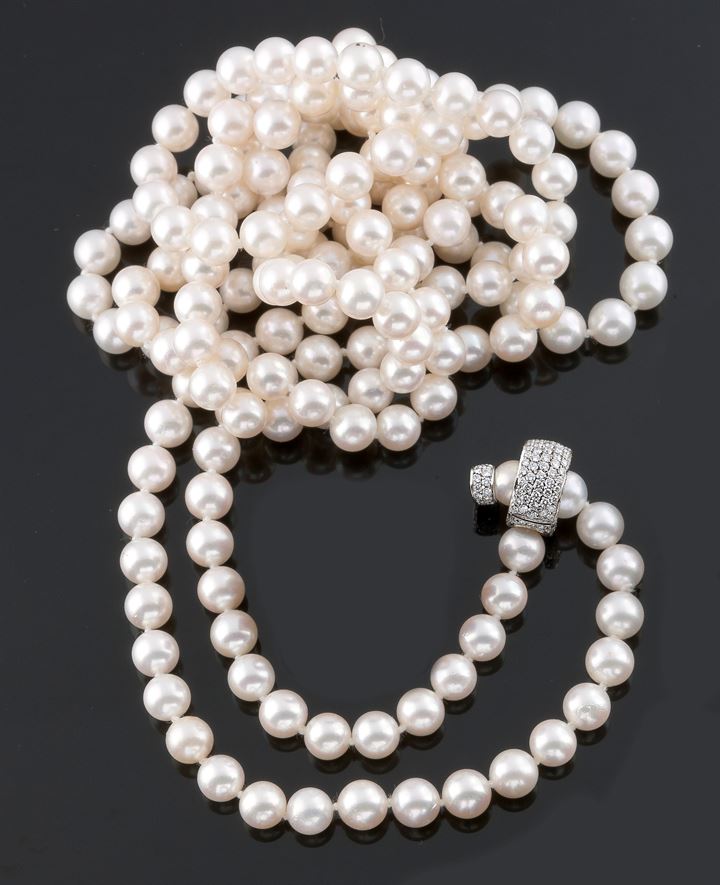 Lotto 813 | COLLANA DI PERLE Lunga collana di perle del diam di mm 6,7 a 6,9 ; chiusura...