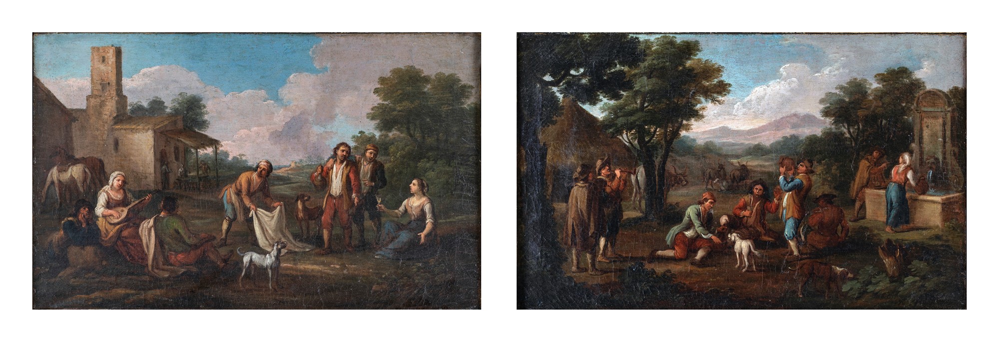 Michelangelo Cerquozzi - a) Scena di genere con coloni e viandanti b)...