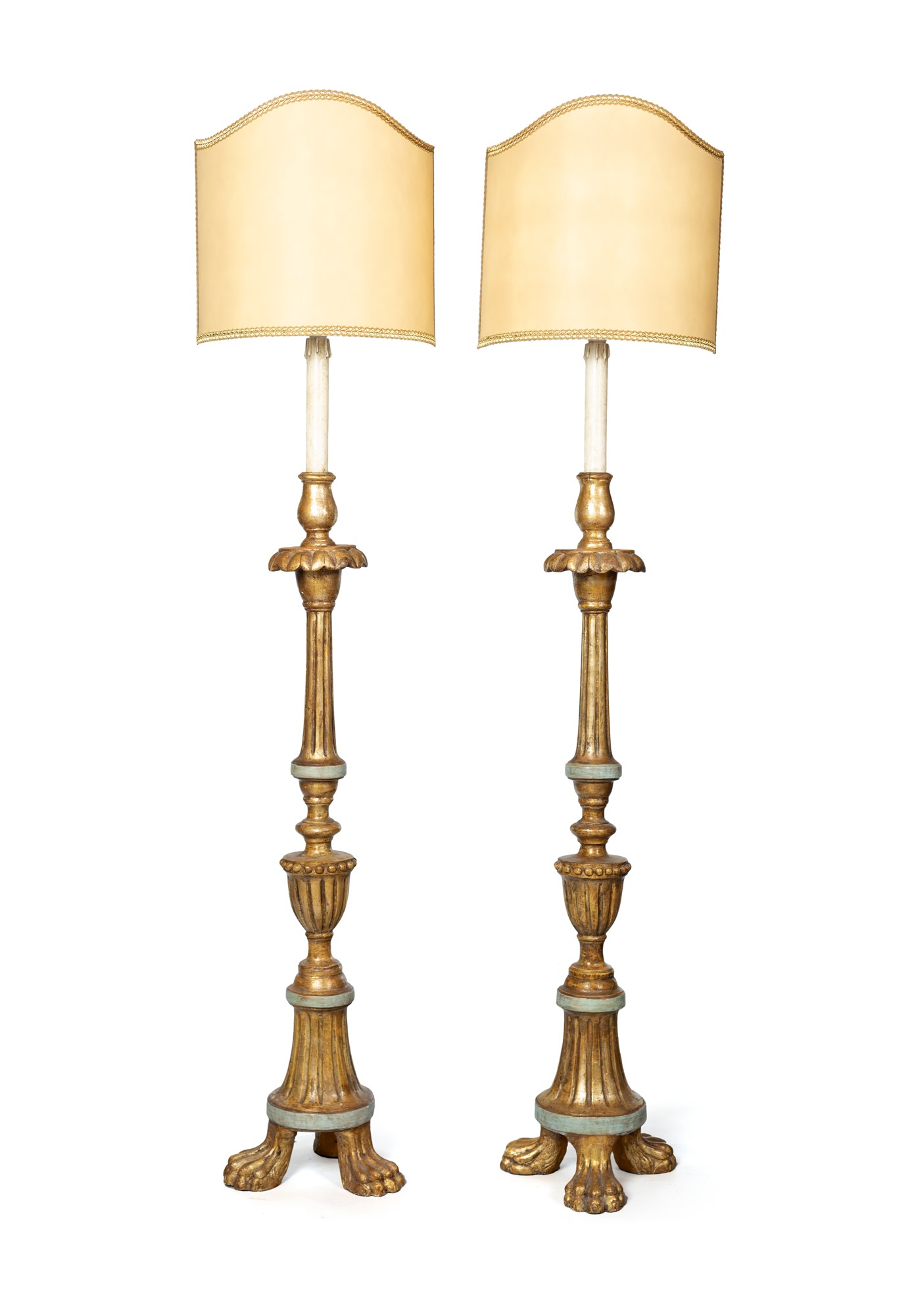 Coppia di torciere in legno dorato, XIX secolo - - cm 128x33