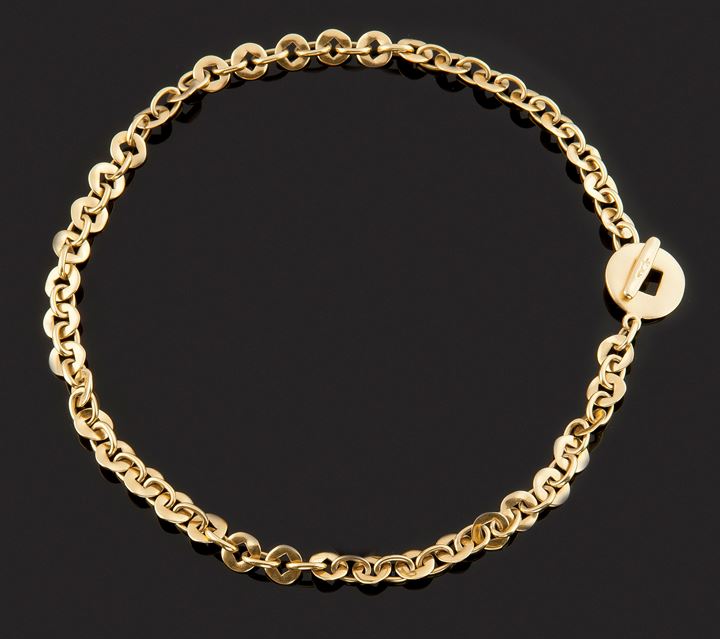 Collana in oro giallo, firmata "Pomellato", modello "Monete", lavorata a maglie tonde