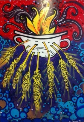 Mista, spray, resina e collage su tavola