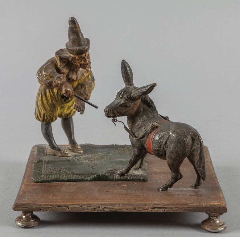 Domatore di asinello gruppo in bronzo policromo Austria sec.XIX base in legno