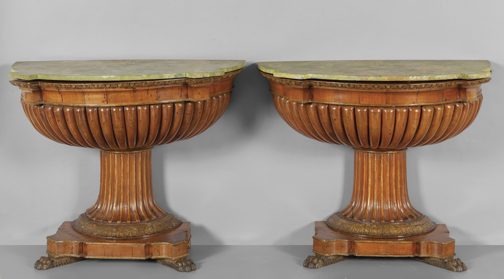 Coppia di grandi fioriere Carlo X in ciliegio con lumeggiature a foglia d'oro Lucca inizi sec.XIX