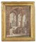 Scuola emiliana sec.XVIII 'Architettura con figure' tempera su carta cornice coeva in legno intagliato e dorato