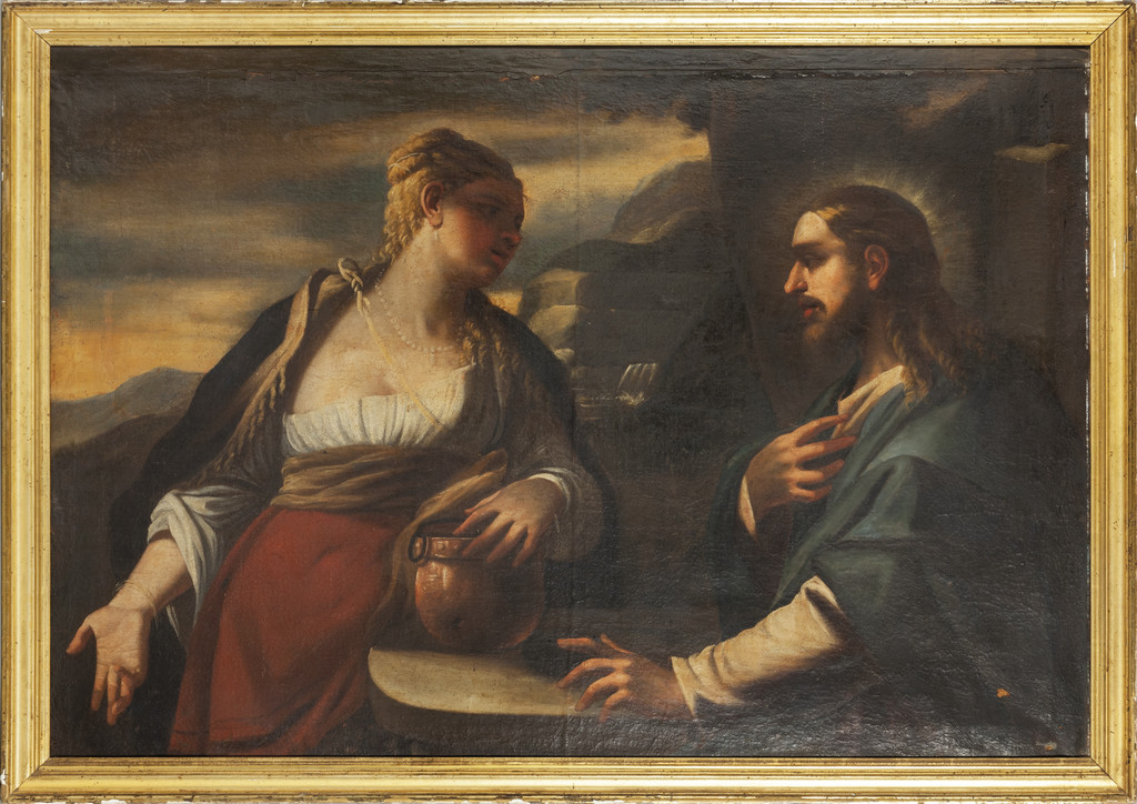 Scuola veneta sec.XVII 'Rebecca al pozzo' olio