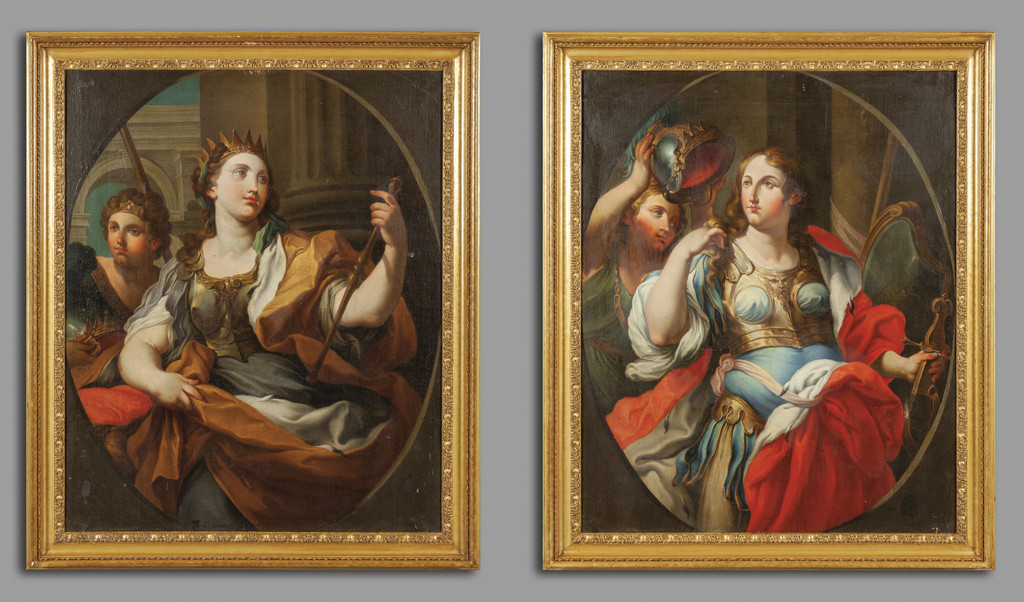 'Ritratti di donne guerriere' coppia di olii