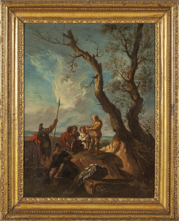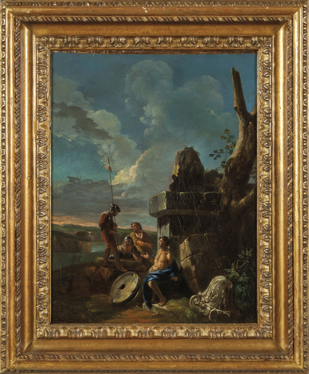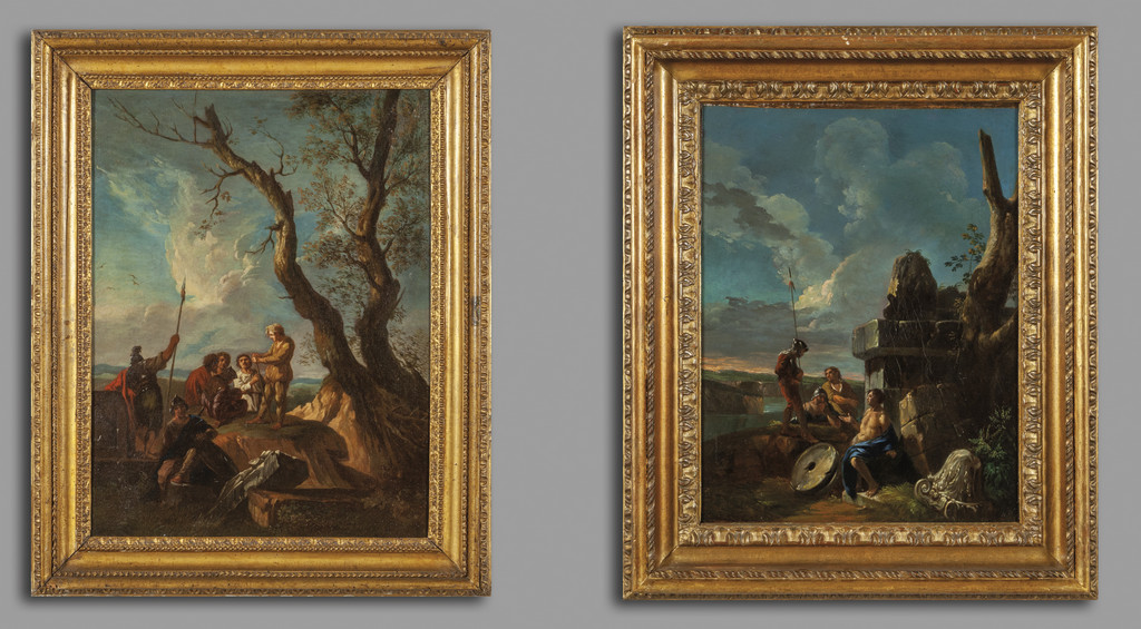'Paesaggi animati con architetture armigeri e figure' due olii
