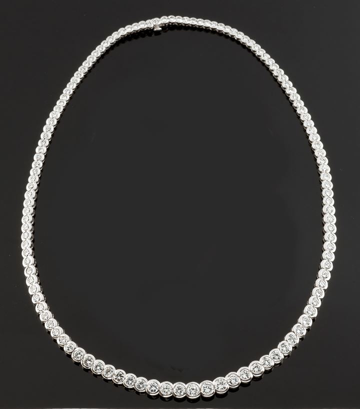 Collana tennis in oro bianco con centoventitrè diamanti taglio brillante rotondo