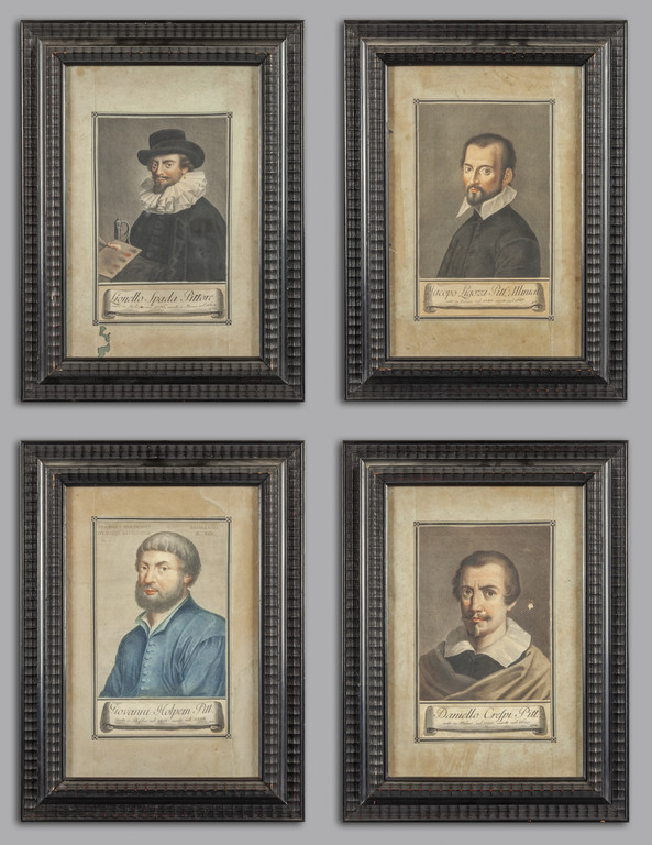 Pittori quattro stampe acquarellate sec.XVIII