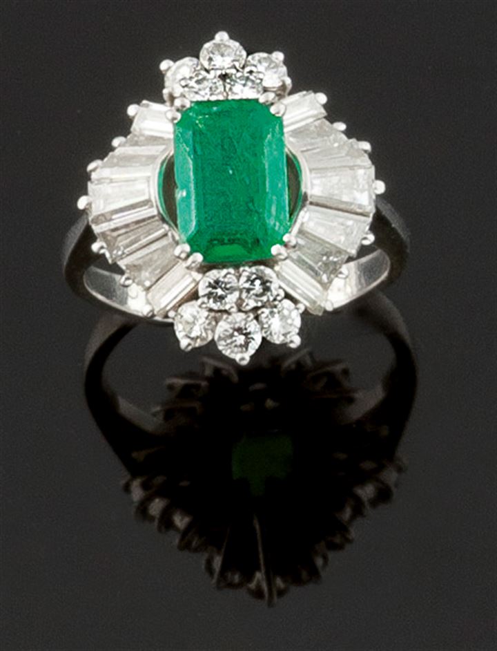 Lotto 860 | ANELLO Anello in platino al centro smeraldo di taglio rettangolare contornato...