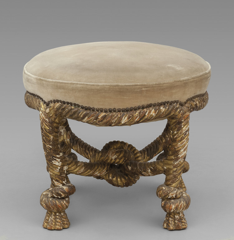 Sgabello in legno intagliato e dorato a 'cordone' inizi sec.XIX