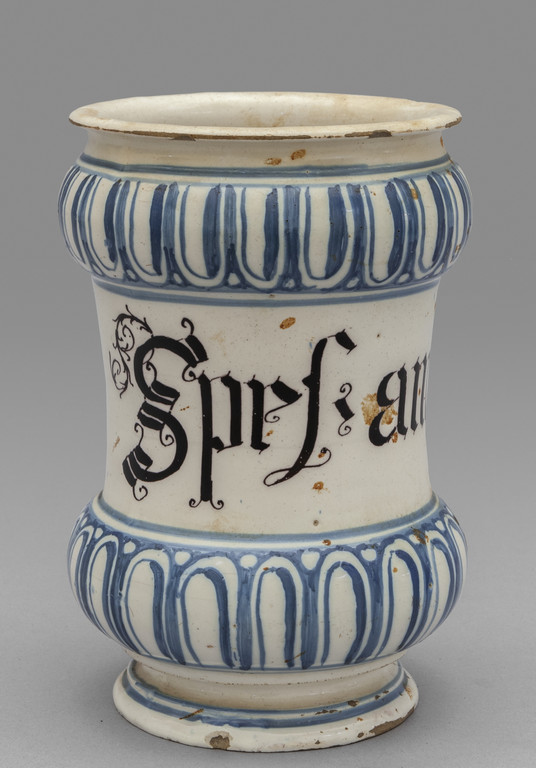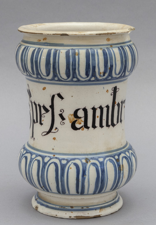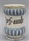 Albarello in ceramica decorazione in blu su fondo bianco con scritta medicinale Faenza sec.XVIII