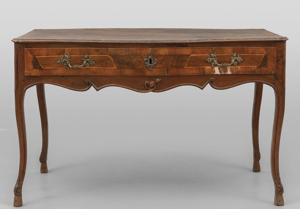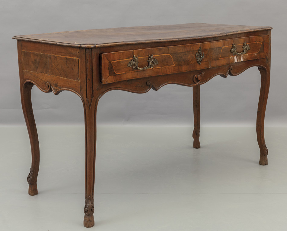 Console in noce cassetto lastronato e filettato in legno di frutto Emilia I metà sec.XVIII