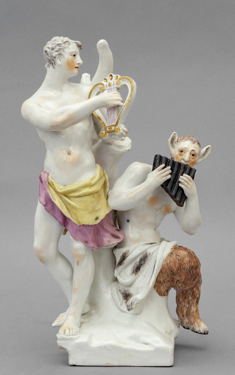 Apollo e Pan gruppo in porcellana policroma Vienna sec.XVIII