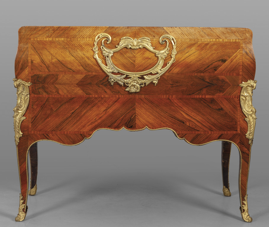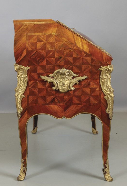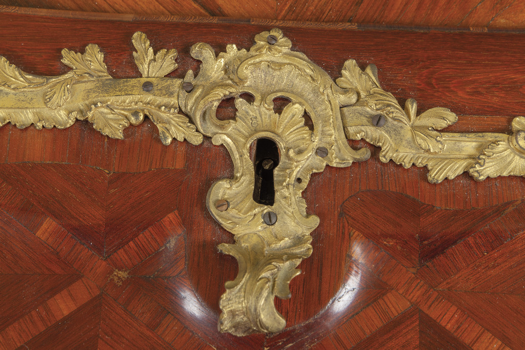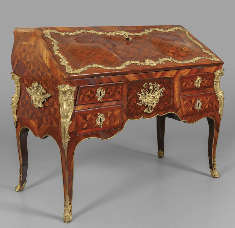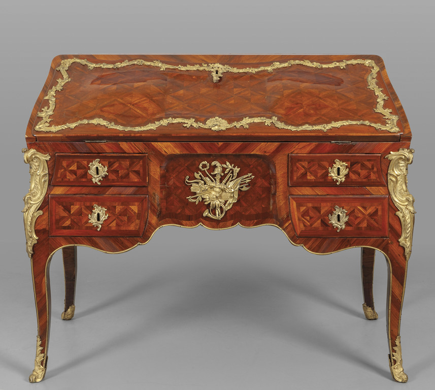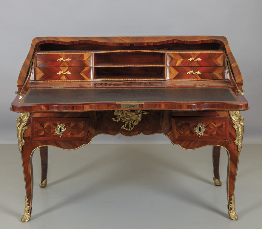Bureau Luigi XIV da centro a gambe alte lastronato a marquetterie ricchissima decorazione in bronzo dorato Francia metà sec.XVIII